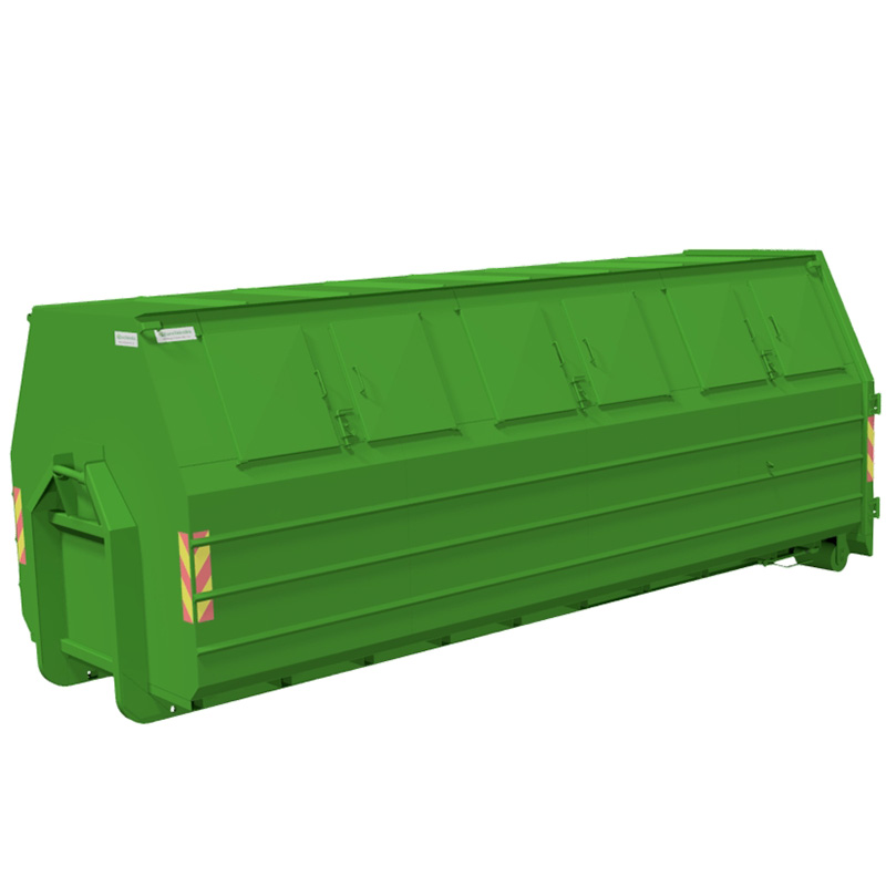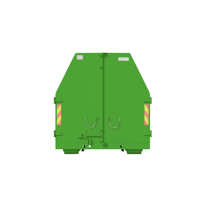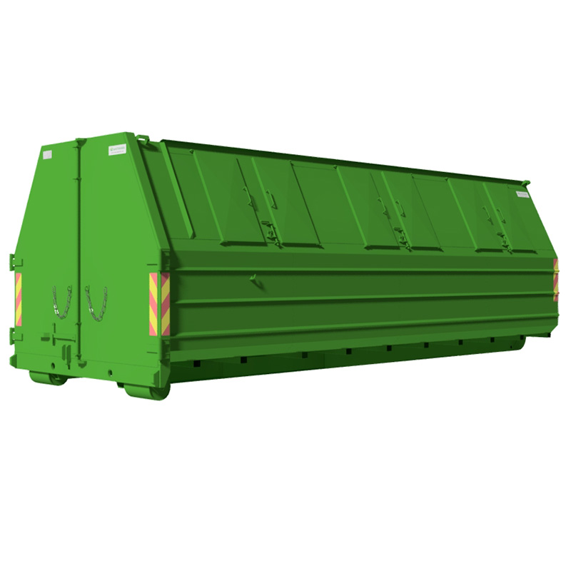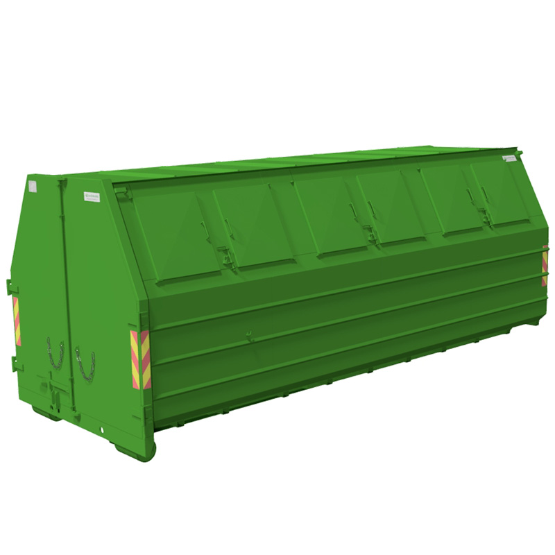 Containeren er lukket og har låsbare innkastluker på siden for nekle bruk. I bakkant er det låsbare dører for tømming. Sideveggene er laget av 3 mm stålplater, men gulvet består av 4 mm stålplater for ekstra slitestyrke.
