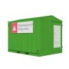 Oppsamlingskar på 1480 liter. Låsbar dør. Det kan monteres automatisk pulverbrannslukker i tak. Nor-1 kupling i sidevegg for tilkobling av brannslange. Skapet levers standard med hyller og gaffellommer for flytting. Lasterampe og og brannslukkeutstyr som tilbehør sammen med lås, adgangskontroll, solcelleanlegg, belysning etc. tilpasses etter behov.