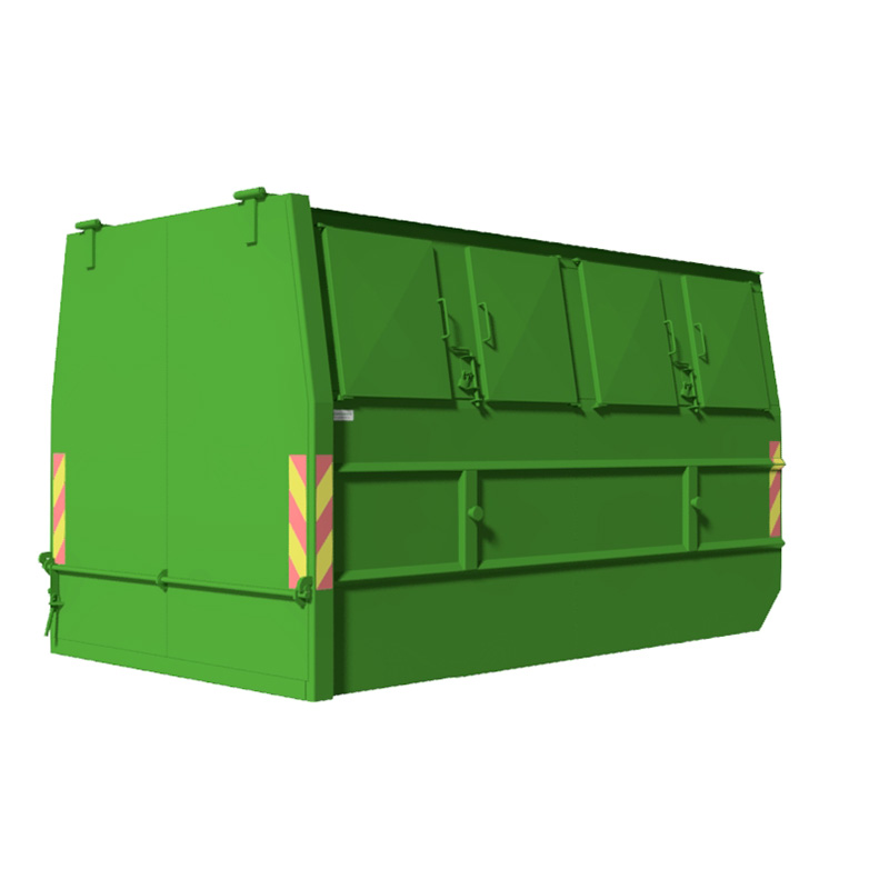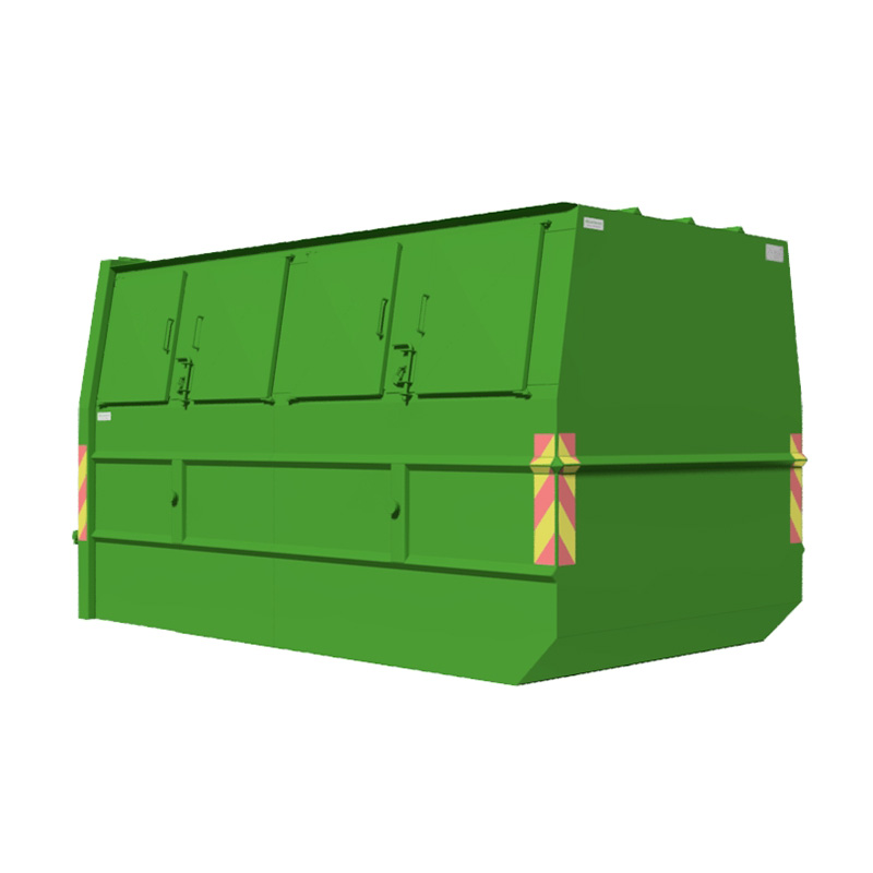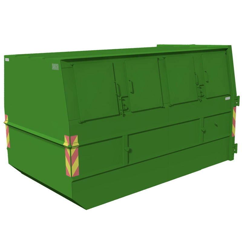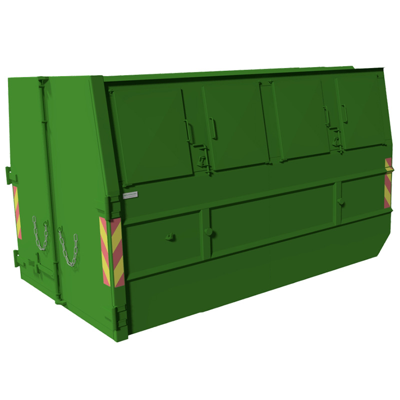 Liftcontaineren kan leveres med dører eller topphengslet bakluke for tømming.